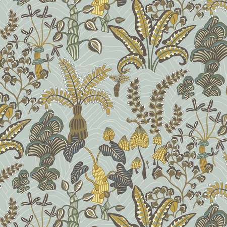 T10141 PALM FROND Navy And Green Thibaut Wallpaper
