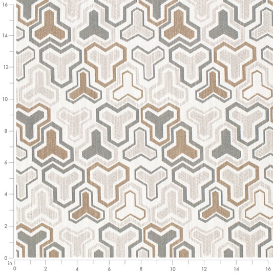 D4337 Abstract & Geometric Caramel Brown,Grey & Silver Charlotte Fabrics