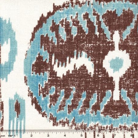 302870F BUDDAKAHN Turquoise Brown on Oyster Quadrille Fabric