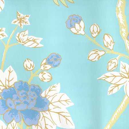 306062W HAPPY GARDEN Turquoise On White Quadrille Wallpaper