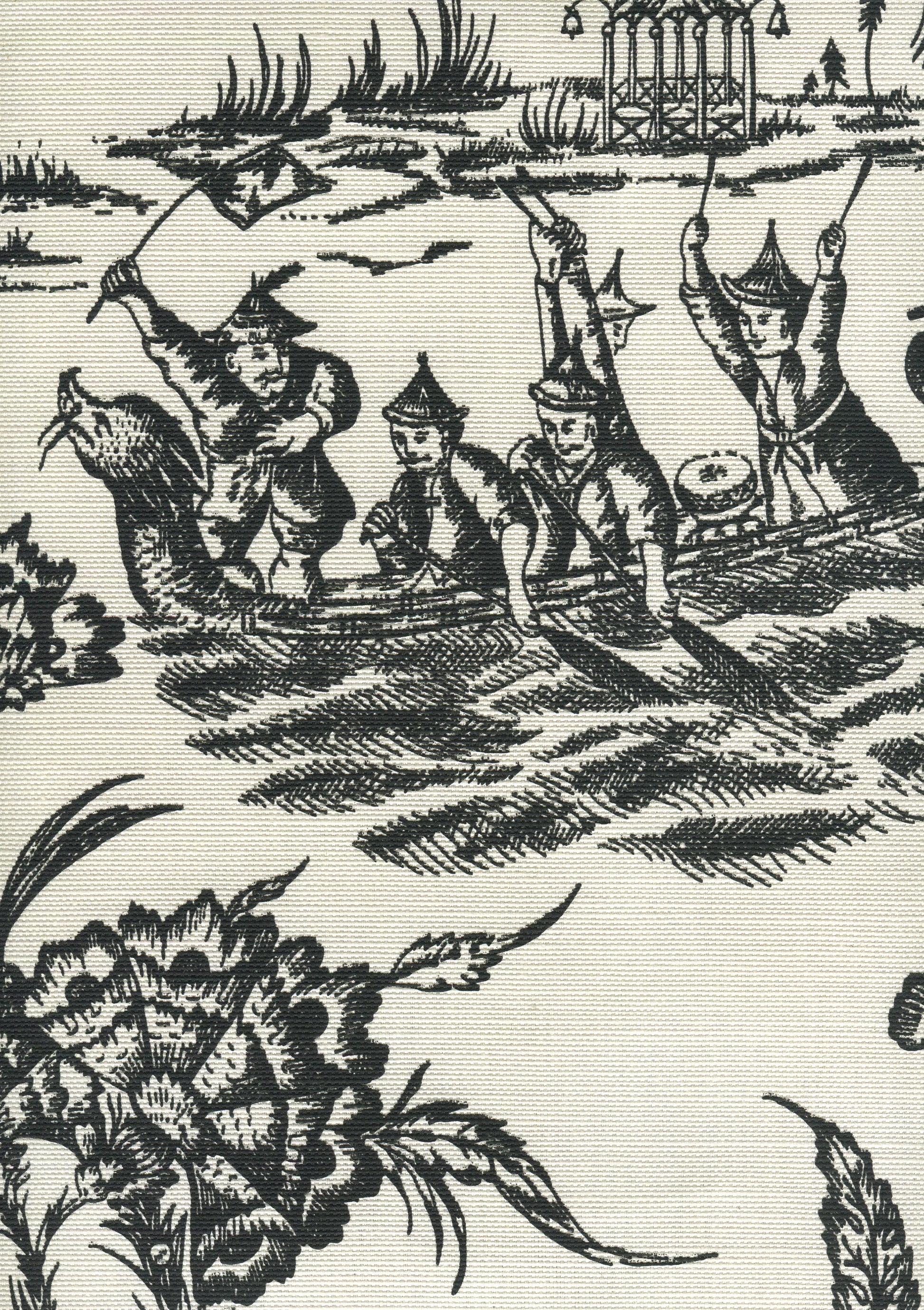 306259F ROYAL JOURNEY II Black on Tint Quadrille Fabric